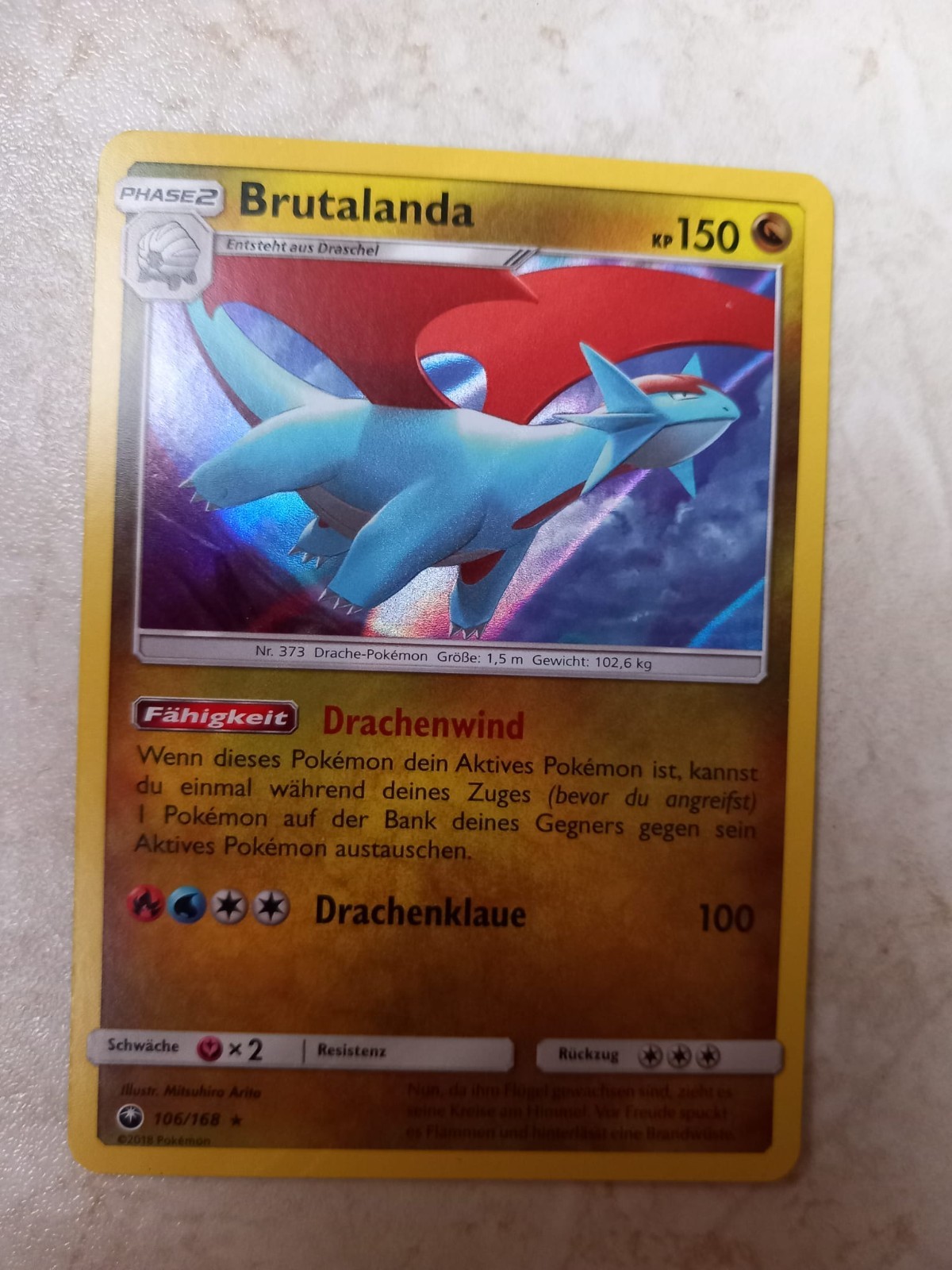 10 verschiedene Pokémonkarten mit Brutalanda 106/168 Re-Holo Sturm am Firmament