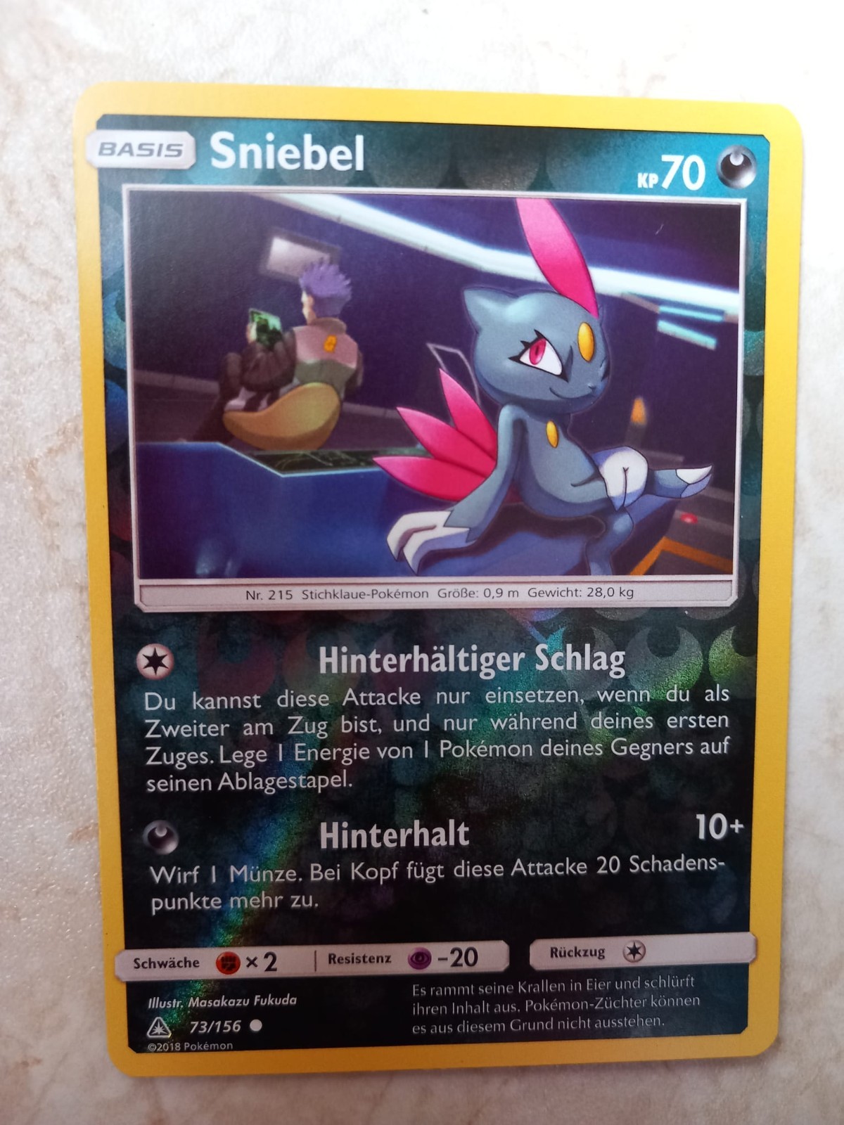 10 verschiedene Pokemonkarten mit Sniebel 73/156 Re-Holo Ultra-Prisma